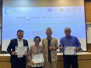 From left to right in the closing ceremony photo on April 25th: Director Dr. Nugroho Adi Sasongko from the National Research and Innovation Agency (BRIN) of Indonesia, Director Prof. Neni Sintawardani, Vice President Jhy Chern Liu of Taiwan Tech, and Director Dr. Adrin Tohari.