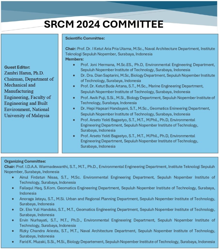 1. Dr. Lilia Khodjet El Khil (IMO London) 2. Dr. Christiaan De Baukelaer (University of Melbourne) 3. Zambri Harun, PhD (Universiti Kebangsaan Malaysia) 4. Prof. Reza Cordova (BRIN) 5. Prof.Adjie Pamungkas, ST, M.Dev, Plg., Ph.D (ITS)