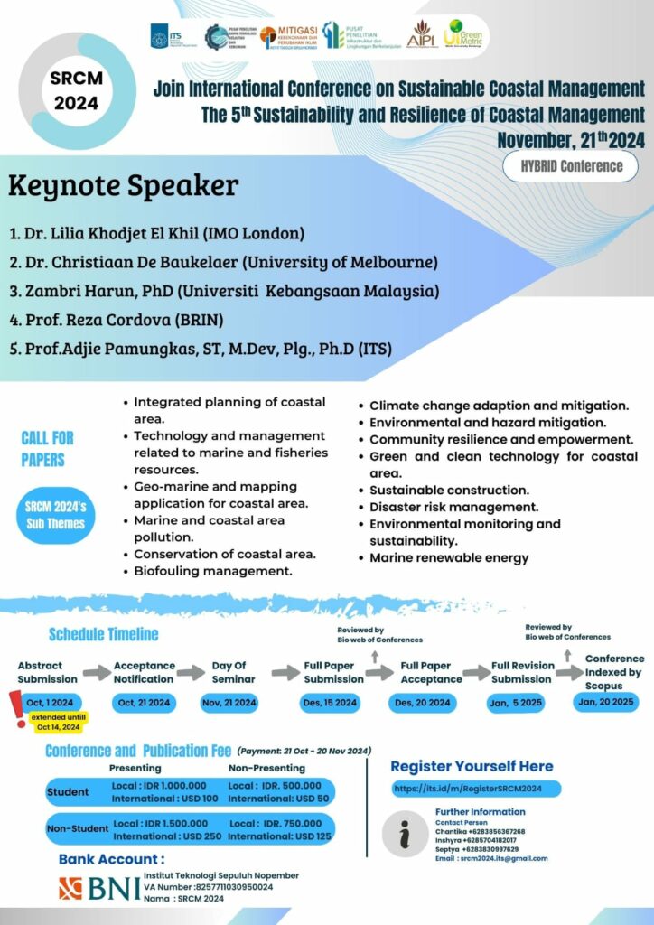 The Joint International Conference on the 5th Sustainable and Resilience Coastal Management 2024 will be held with four well-known keynote speakers from several countries.