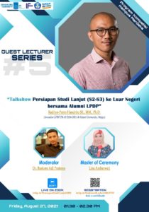 Hari/Tanggal: Jum’at, 27 Agustus 2021 Jam: 13.30-14.30 WIB Link Zoom: https://intip.in/PersiapanStudiLanjut2021 Registrasi: https://intip.in/RegGuestLecture5thDTIF
