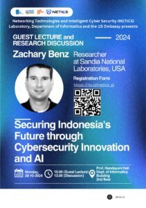 The US Embassy in collaboration with Department of Informatics will held a guest lecture ” Securing Indonesia’s Future through Cybersecurity Innovation and AI ” and a research discussion with postgraduates students.