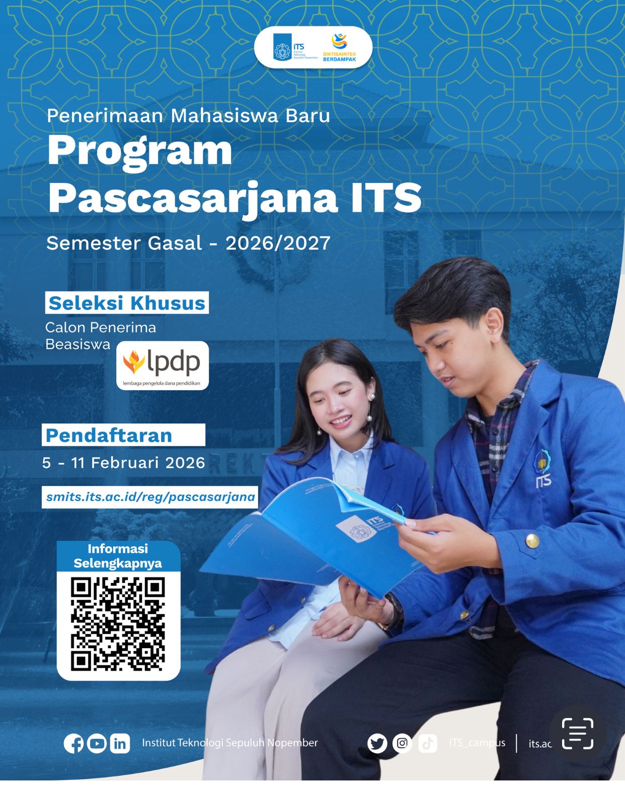 Penerimaan mahasiswa baru program Pascasarjana ITS semester gasal 2026/2027 seleksi khusus calon penerimaan beasiswa LPDP smits.its.ac.id/reg/pascasarjana