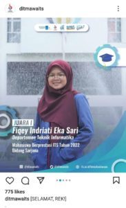 SELAMAT KEPADA FIQEY INDRIATI EKA SARI ATAS JUARA 1 MAHASISWA BERPRESTASI ITS TAHUN 2022 BIDANG SARJANA