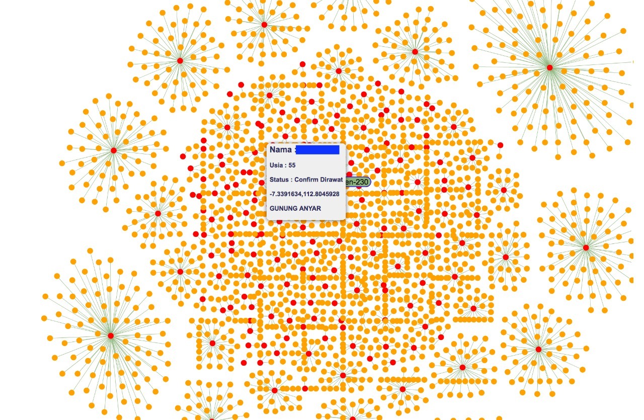 Visualization of the location of COVID-19 patients displayed on the website tracingCovid19.jatimprov.go.id by the ITS Team