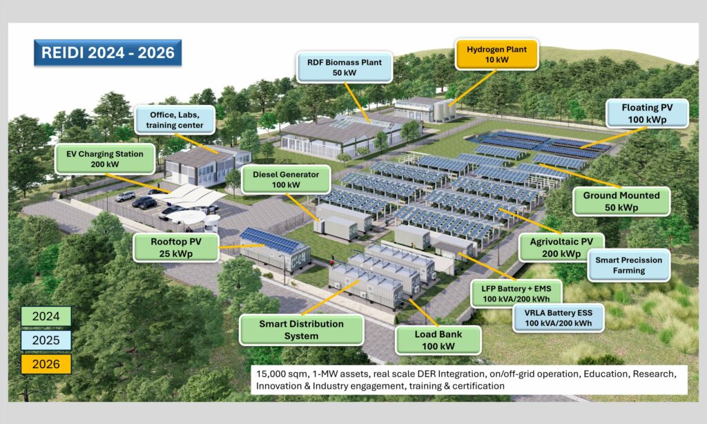 Renewable Energy Integration Demonstrator of Indonesia at ITS Surabaya (REIDI) is the largest research, demonstration, training and testing facility in Indonesia related to new renewable energy (EBT) systems. REIDI is located on the ITS Campus, Surabaya with a total area of 1.5 hectares. The infrastructure prepared for REIDI is a PLTS system with a total of 500kWp, 400 kWh storage, biomass with a total capacity of 50kW and Hydrogen power of 10kW. Apart from electricity generation infrastructure, REIDI is also developing an agrivoltaic system and eco campus so that it synergizes with an EBT-based generation system. REIDI facilities as a research facility in the field of EBT are very complete so that they can be utilized by various parties to support the development of EBT technology in Indonesia.