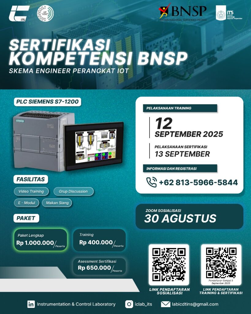 Seluruh kegiatan Pelatihan dan Asesmen akan dilaksanakan secara Luring/Offline di Laboratorium Instrumentation & Control.