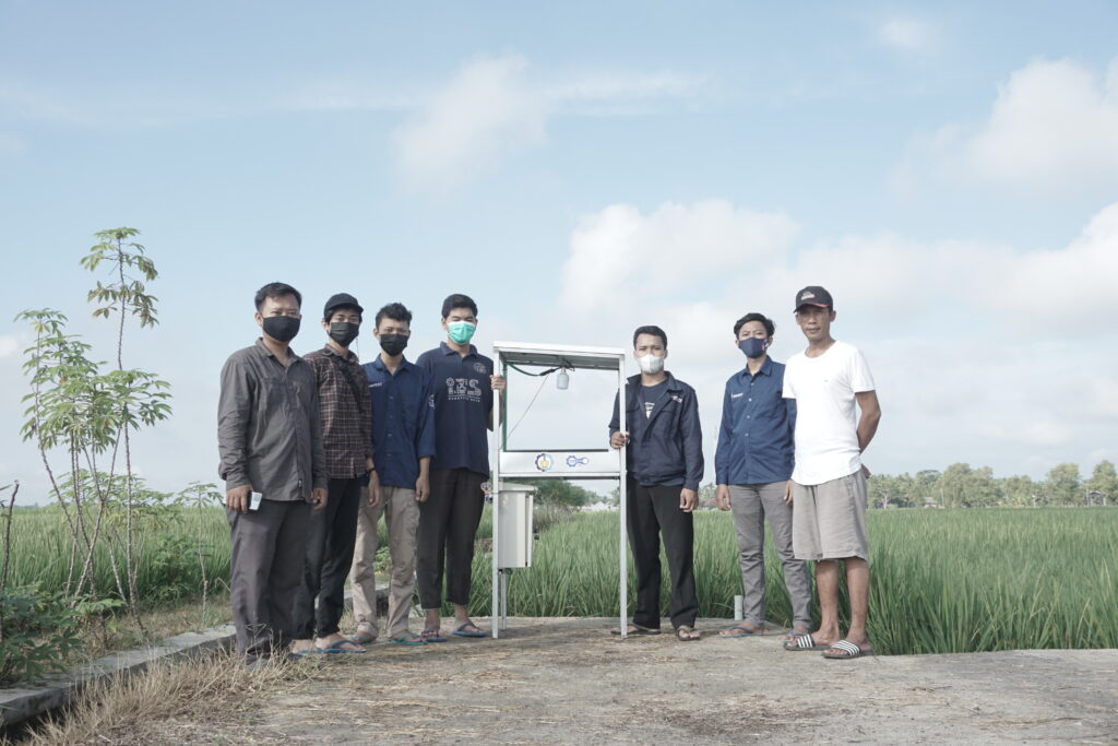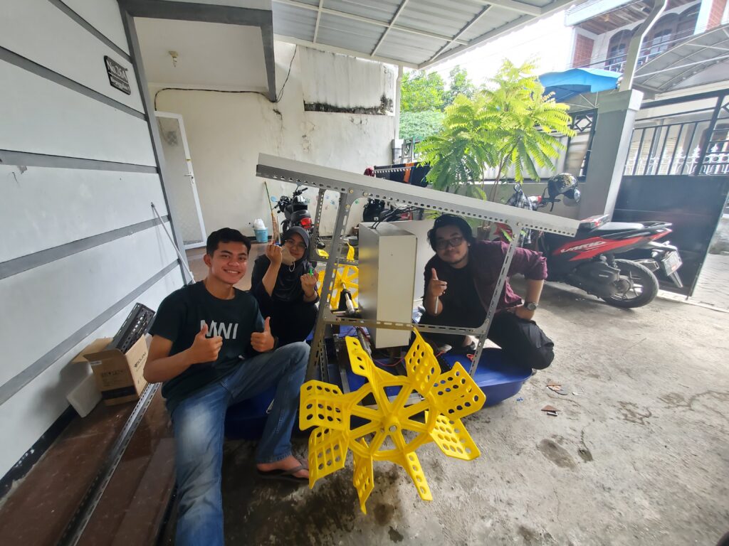 Bantu Petani Tambak Udang, KKN ITS Rancang Aerator Berbasis Fotovoltaic dengan dosen Teknik Instrumentasi I Putu Eka Widya Pratama bersama tim mahasiswa anggota KKN PM ITS di Balai RW Desa Gunung Anyar Tambak, Surabaya