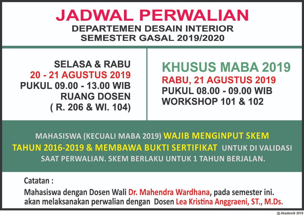 Jadwal Perwalian Departemen Desain Interior Semester Gasal 2019/2020
