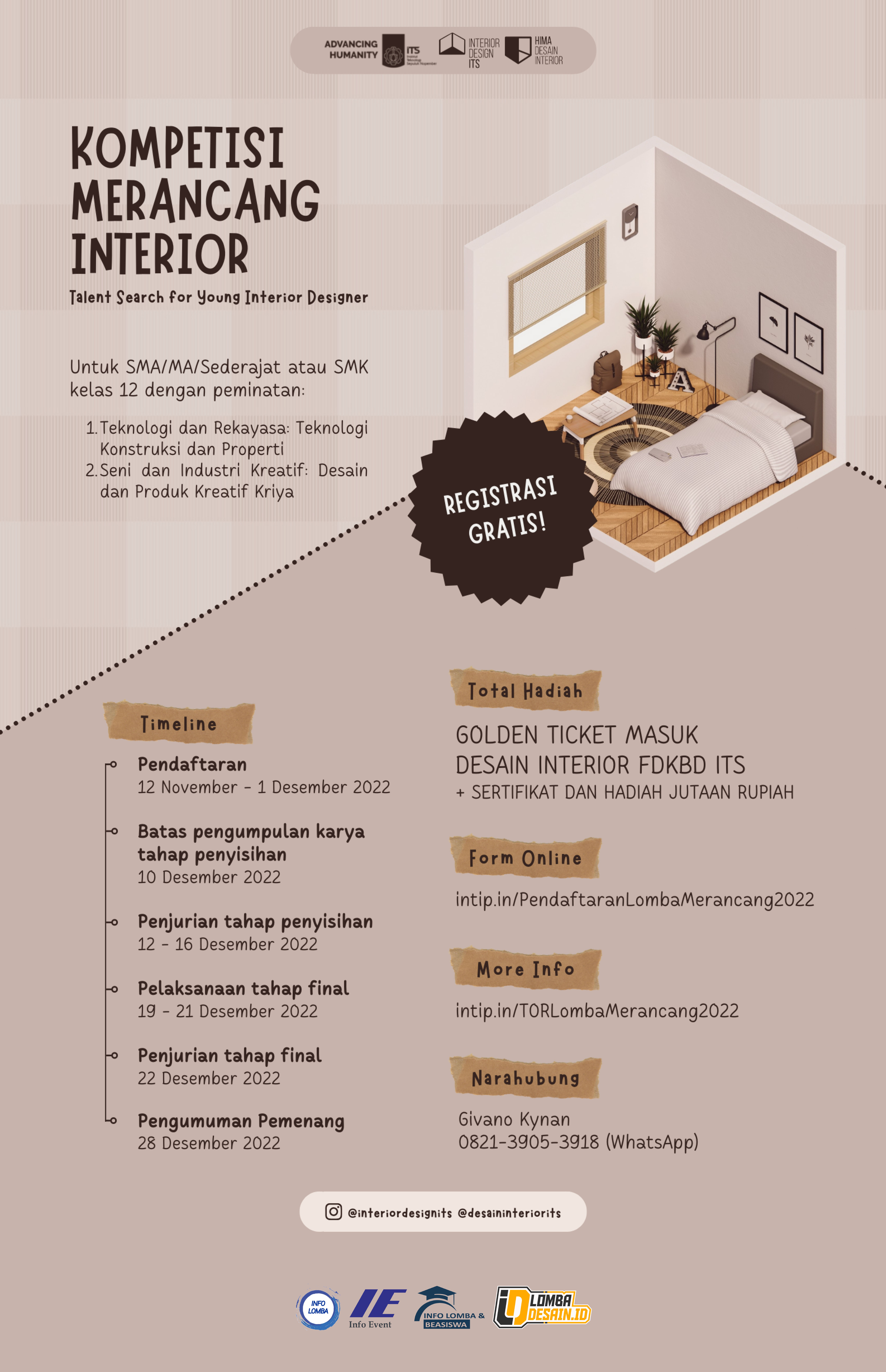 Merupakan kompetisi yang diperuntukkan bagi pelajar SMA/MA/Sederajat atau SMK Peminatan Teknologi dan Rekayasa: Teknologi Konstruksi dan Properti atau Seni dan Industri Kreatif: Desain dan Produk Kreatif Kriya kelas XII di seluruh Indonesia untuk menunjukkan bakat dalam mendesain interior. Tujuan dari kompetisi ini adalah untuk menjaring mahasiswa berbakat dan meningkatkan kualitas calon mahasiswa baru di Departemen Desain Interior ITS.