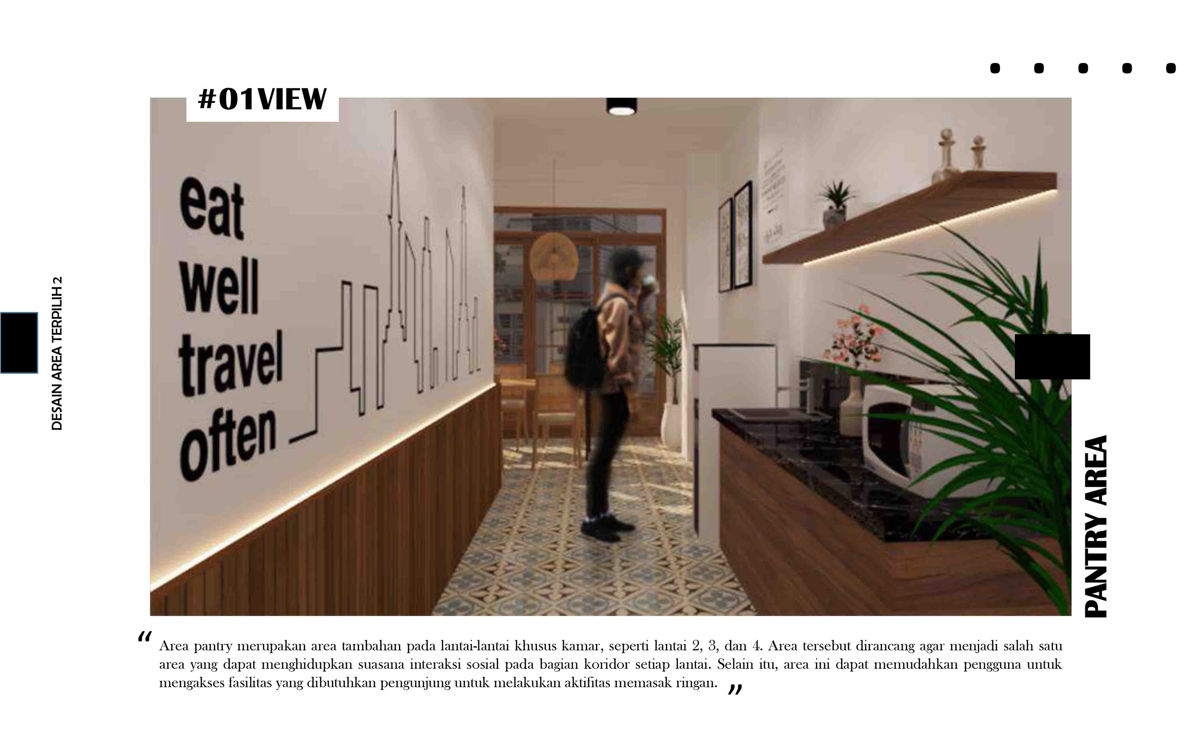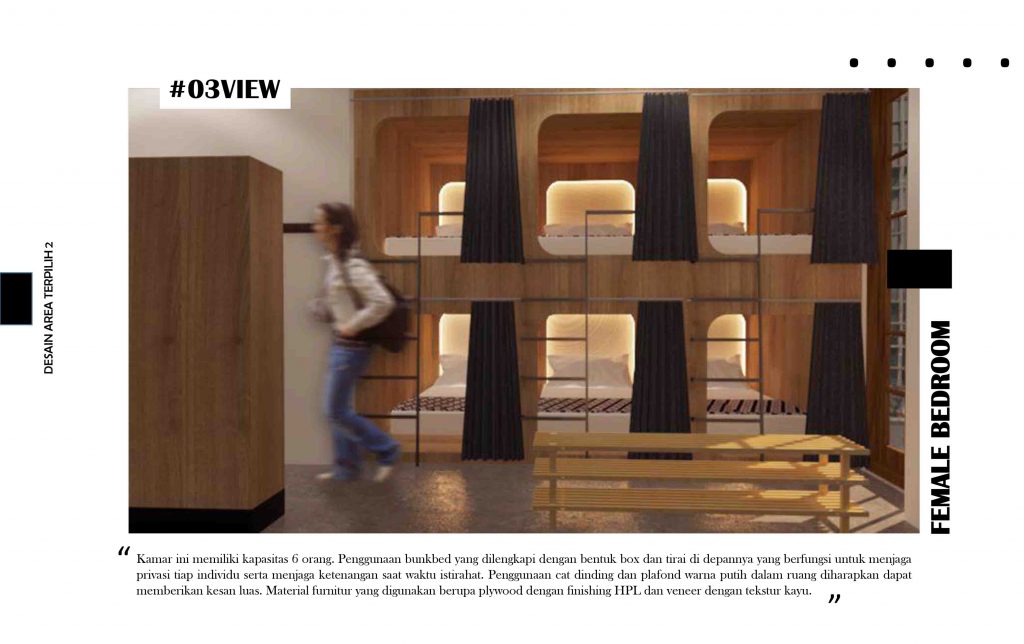 Kenyamanan pengguna hostel. Hal ini dapat diciptakan melalui suasana ruang yang unik, desain area ruangan yang artistik, serta meningkatkan atau menambahkan fasilitas publik di dalamnya, sehingga dapat meninggalkan kesan bagi para pengguna. Berbeda dengan hotel, hostel lebih menekankan nilai kebersamaan serta ruang publik. Pengambilan Konsep desain interior yang berfokus pada nilai sosial interaktif sangat cocok diterapkan pada hostel. Melalui fasilitas-fasilitas bersama serta penataan layout dan desain yang nyaman, diharap dapat mendorong interaksi sosial antar tamu sehingga dapat menjadi cerita yang tak terlupakan bagi mereka. Metode yang digunakan dalam penelitian ini ialah metode approach research.