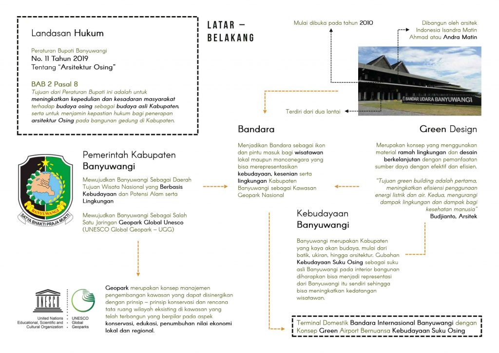 Suku Osing merupakan suku asli dari Kabupaten Banyuwangi. Budayanya merupakan akulturasi dari budaya Jawa dan Budaya Bali sehingga memunculkan kebudayaan baru yang unik dan tidak ada di daerah lain. Berdasarkan hal tersebut, konsep yang diterapkan pada terminal domestik
