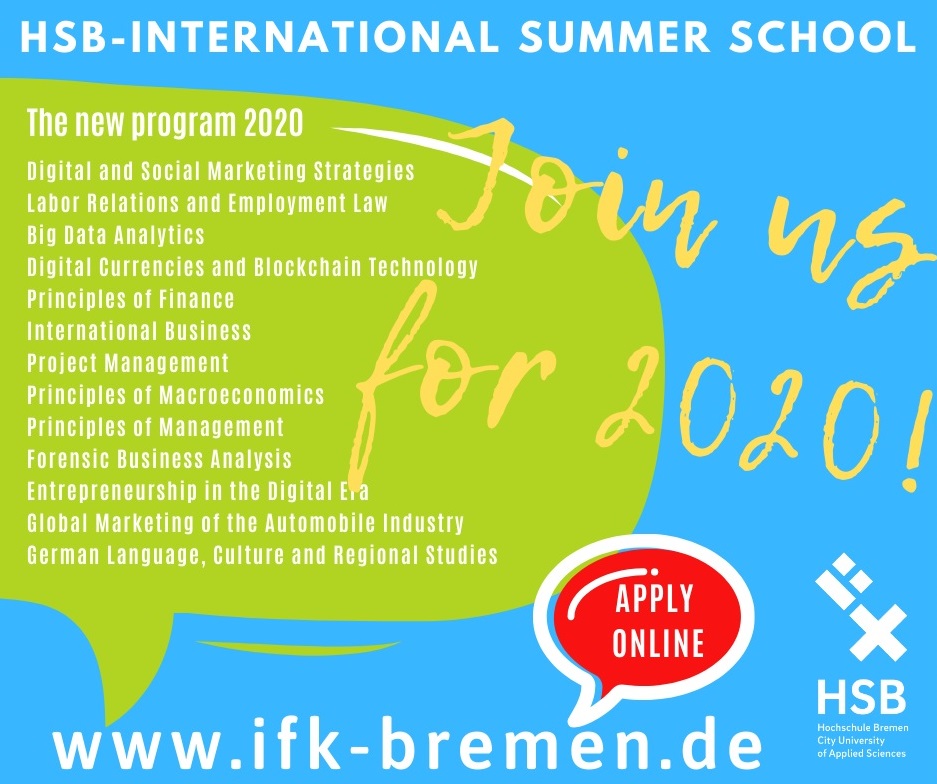 Hochschule Bremen City University of Applied Sciences is open for applications for their HSB-International Summer School 2020 program!