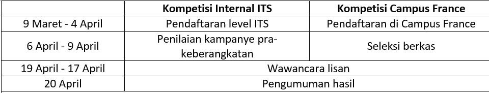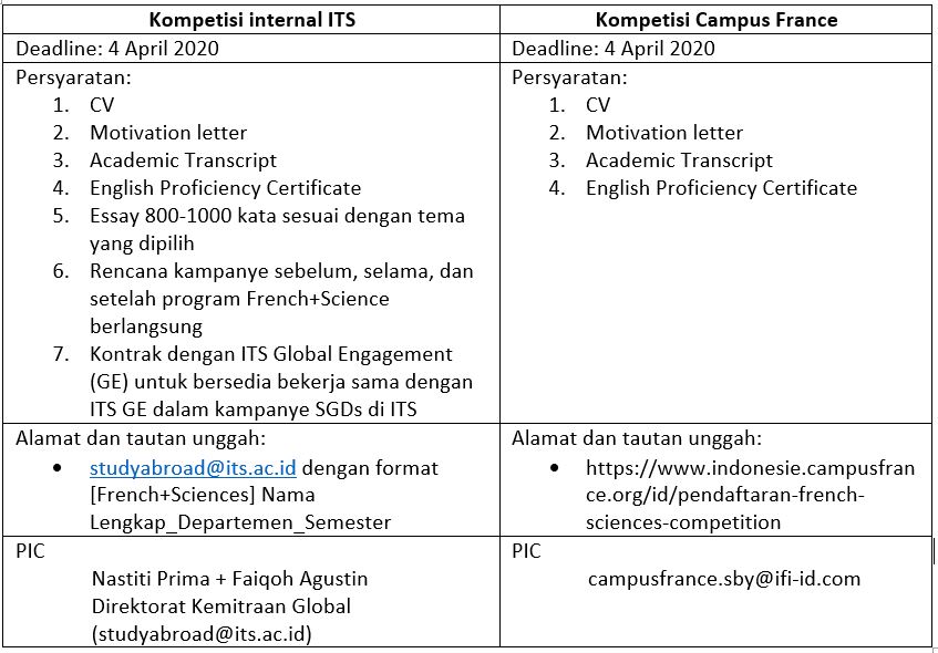 Untuk berkompetisi di French+Science, maka mahasiswa ITS harus melakukan dua pendaftaran sebagai berikut: