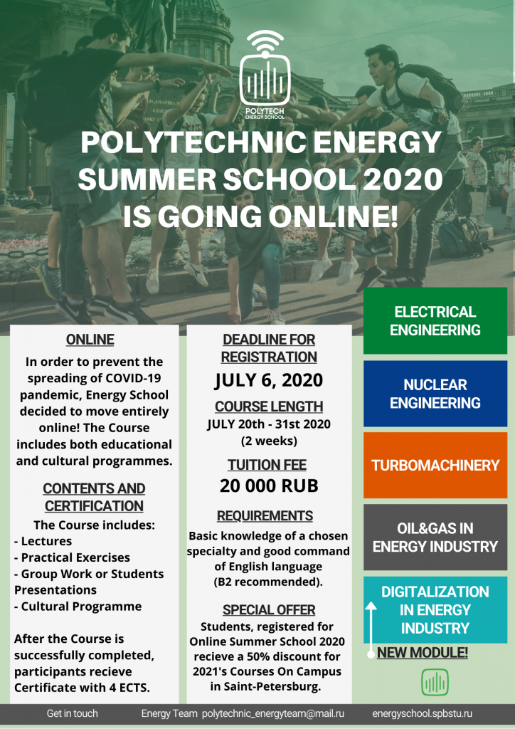 Energy School’s Summer Course 2020 will be transformed into online format with lectures, practical exercises and even a cultural programme. In order to do that with convenience for everyone and stability in scheduling and teaching, there are some adjustments to the Course.