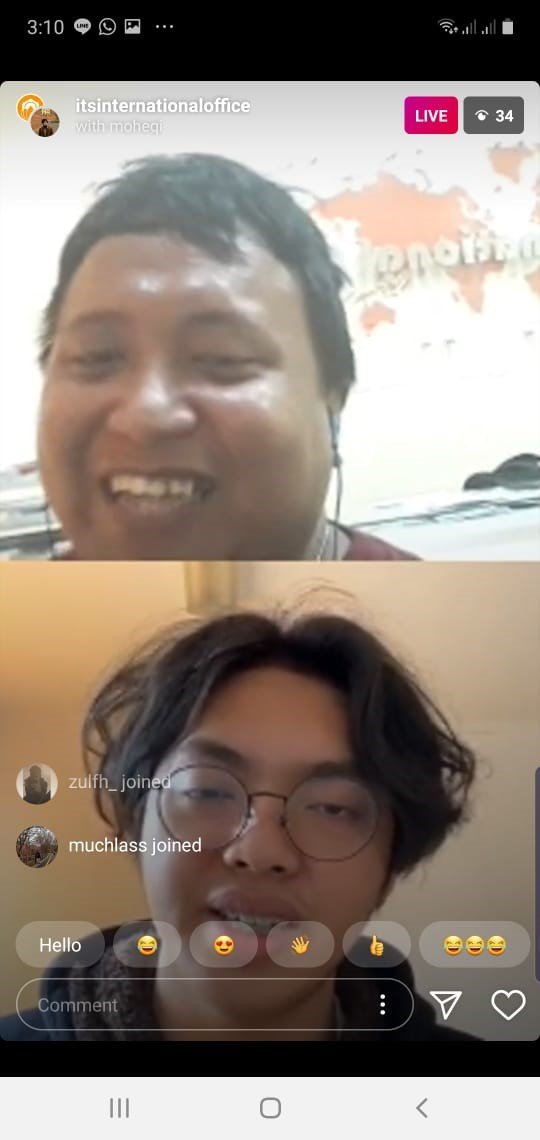 The number of participants attended on the session were fluctuated but the total was 34 people and the recorded video of Instagram Live has been saved on @itsinternationaloffice IGTV by 13 May 2020 and has been watched up to 1741 people. During the open session, the participants were quite enthusiastic, and some questions were asked on announcement open session post and during Instagram Live.