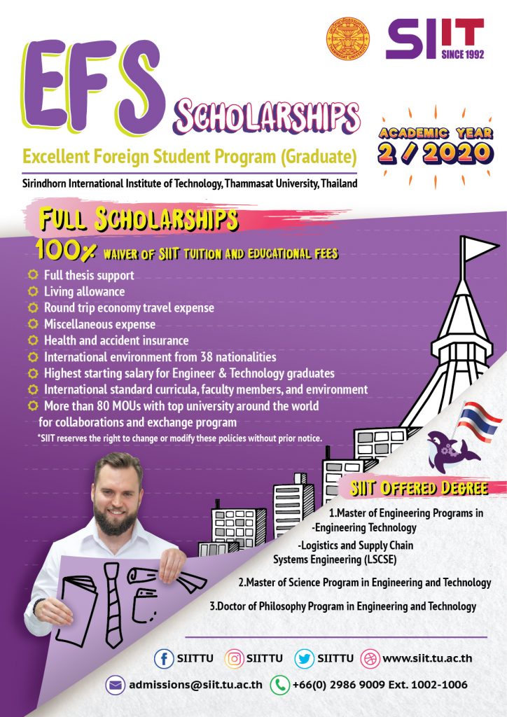 Sirindhorn Technology Scholarship Fund are available for students of any Asian countries to study in a bachelor’s degree program at Sirindhorn International Institute of Technology (SIIT), Thammasat University, Thailand. The scholarships are made available for certain programs of study. This program is exclusive for undergraduate students.