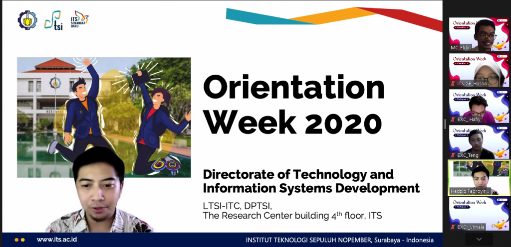 On 25 – 26 September 2020, international students who will undergo an internship or exchange program at ITS Surabaya get an introduction to the learning environment at ITS in the Orientation Week (OWEEK). OWEEK is an orientation activity carried out by ITS Global Engagement (ITS GE) at the beginning of each semester in order to welcome the arrival of ITS international students. In this activity, ITS international students will be given materials regarding the introduction of ITS, steps that must be taken before starting lecture activities, and how to carry out academic lecture activities online. This time OWEEK was held virtually through the Zoom Meeting due to the current COVID-19 pandemic situation. A total of 32 students from various countries ranging from Malaysia, Philippines, and France participated in OWEEK. OWEEK that took place from 03.00 – 06.00 PM included Glimpse of ITS, Academic Regulation, ITS Information System, and others. There are several lecturers and staff who help provide this material. The lecturers and staff are Bambang Pramujati, S.T., M.Sc.Eng., Ph.D. (Vice Rector IV), Octaviyanti Dwi Wahyurini, S.T., M.AppDesArt, Ph.D. (Senior Manager of ITS Global Engagement Office on Promotion & Mobility), Hadziq Fabroyir, S.Kom., Ph.D. (Head of Section for Information System Development), and Mohammad Syaroni Syawaludin S.Ikom (Staff Hospitality for International Students).