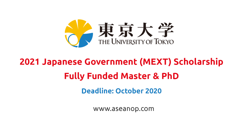 The last date to apply for the University of Tokyo Scholarship in Japan 2021 – MEXT Japanese Government Scholarship is 30 October 2020 for the September 2021 enrollment.