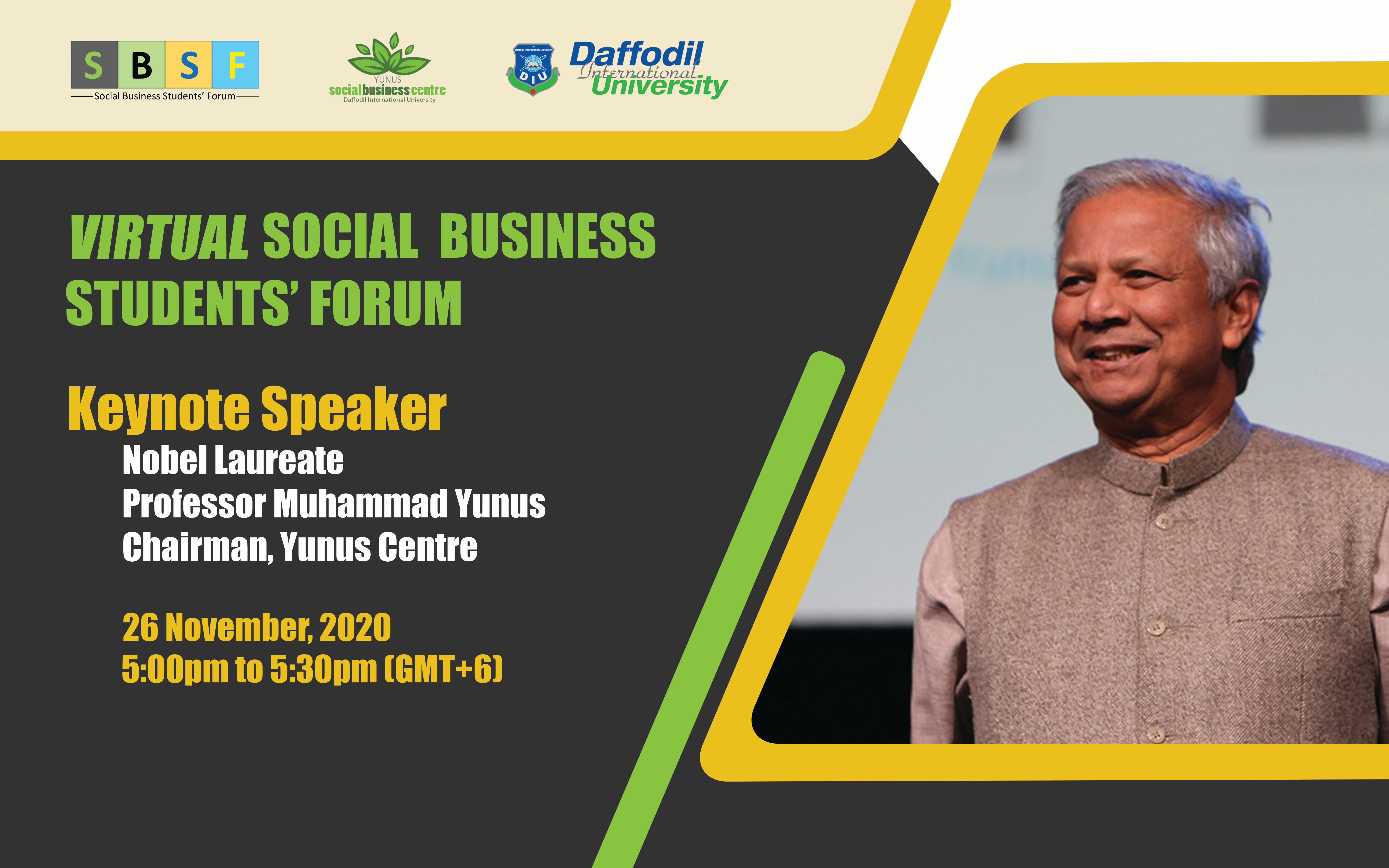 Daffodil International University (DIU) Bangladesh present “Virtual Social Business Students Forum” (VSBSF) 2020″. They will hold this program on 25-26 Nov 2020