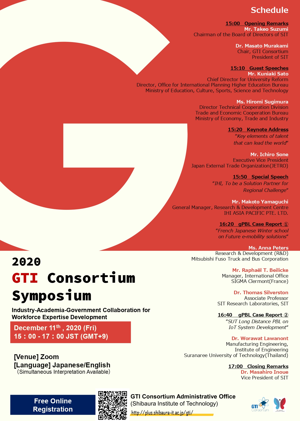 Date & Time: Friday, December 11th , 2020 at 3:00-5:00pm (JST) Venue: Zoom Webinar (Zoom information will be announced after registration) Free Online Registration: https://www.gti-consortium.jp/en/news/detail/A/28