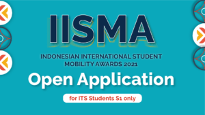 Halo Mahasiswa ITS, Bersama ini kami sampaikan bahwa Kemdikbud-Dikti melalu platform Merdeka Belajar telah melaunch program “Indonesia International Students Mobility Awards (IISMA) 2021”. Dalam program ini, teman teman bisa mengikuti program study abroad secara fisik selama 1 semester denngan estimasi keberangkatan Agustus/Sept 2021. Adapun mahasiswa terpilih dalam program ini mendapatkan bantuan beasiswa sebagai berikut: tiket pesawat PP, biaya hidup, tuition fee di host universitas, biaya karantina mandiri, asuransi, visa, uang transport dan uang buku. Mohon diperhatikan bahwa program ini terbuka untuk mahasiswa ITS S1 saja.