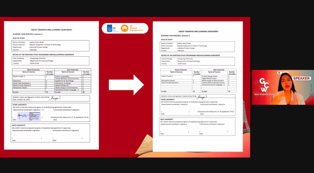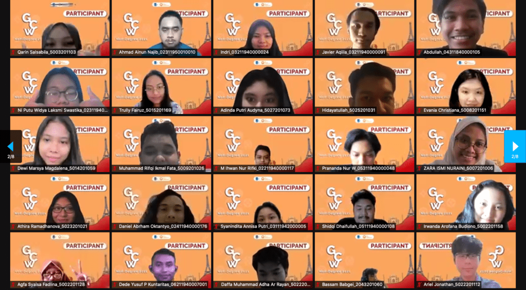 Pada hari pertama GCW Non Degree dimulai dengan Briefing oleh Muhammad Rifki Rif’at Razani selaku PIC GCW Non Degree kali ini kemudian dilanjutkan dengan Opening oleh Daniel Michael Radja Pande selaku Koordinator Divisi ID ITS GE. Selanjutnya terdapat sesi “Global Thinking and Why we should study abroad?” yang dibawakan oleh Ibu Octaviyanti Dwi Wahyurini, S.T., M.AppDesArt, Ph.D. mengenai tantangan dan persaingan global di masa kini serta pemaparan awal mengenai program – program internasional dan MBKM (terutama IISMA) yang ditawarkan terhadap mahasiswa dan tujuan ITS dalam mengejar status World Class University. Setelah sesi yang sangat menarik tersebut, dilanjutkan dengan salah satu Alumni ITS yaitu Ikhwan Iqbal, M.Sc selaku Researcher at Lenovo Japan dengan pemaparan mengenai Global Citizen mencakup volunteering dan belajar di luar negeri, Pemaparan mengenai wawasan cross cultural abroad dan Keuntungan pengalaman luar negeri dalam pencarian kerja dan kesempatan masa depan.
