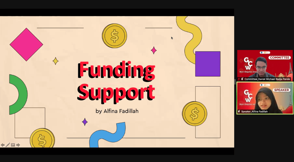 Hari ketiga yang merupakan hari terakhir sekaligus penutup program GCW Non Degree. Acara dibuka dengan semangat oleh duo MC yaitu Anjie Putri Oktavia dan Daniel Michael Radja Pande yang kemudian dilanjutkan dengan sambutan oleh Aulia Kharis Rakhmasari selaku PIC dari kegiatan ini. Sesi materi terakhir dibawakan oleh Alfina Fadillah mengenai “Funding Preparation of Study Abroad” dan dimoderatori oleh Daniel. Alfina merupakan mahasiswi yang sudah pernah mengikuti student exchange ke Korea Selatan. Materi menjelaskan secara runtut mengenai proses pendanaan program study abroad di ITS termasuk estimasi biaya yang dibutuhkan selama study abroad berdasarkan pengalaman dari Alfina.