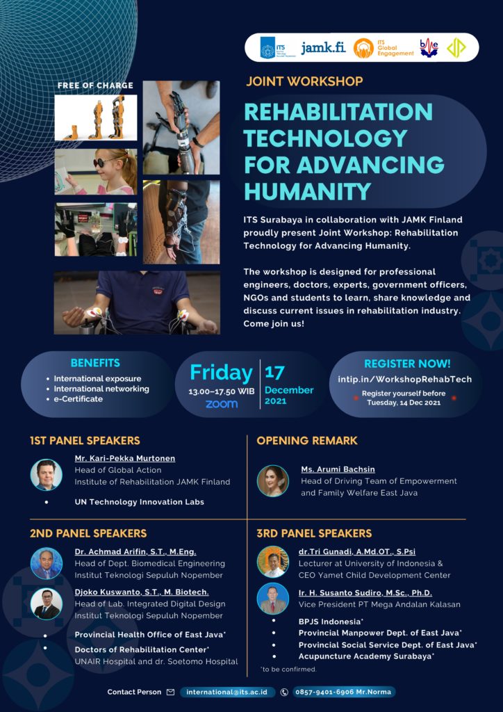 ITS Surabaya & JAMK University of Applied Sciences, Finland proudly present Joint Workshop Rehabilitation Technology for Advancing Humanity What