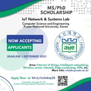 Dear ITS students, Elevate your career with a MS/PhD Scholarship in the cutting-edge IoT Network & Systems Lab at Pusan National University, South Korea.