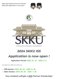 Dear ITS Student, We inform you that SKKU International Summer Semester (ISS) 2024 Application is now open!