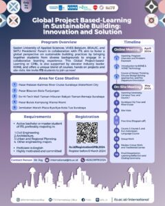 GPBL in Sustainable Building: Innovation and Solution is a collaboration program by ITS Surabaya, Saxion University of Applied Sciences, VIVES Belgium, BRAUIC, and SATU President. This program designed as a platform to foster a global perspective on sustainable building practices by bringing together students from diverse backgrounds to engage in a collaborative learning experience.