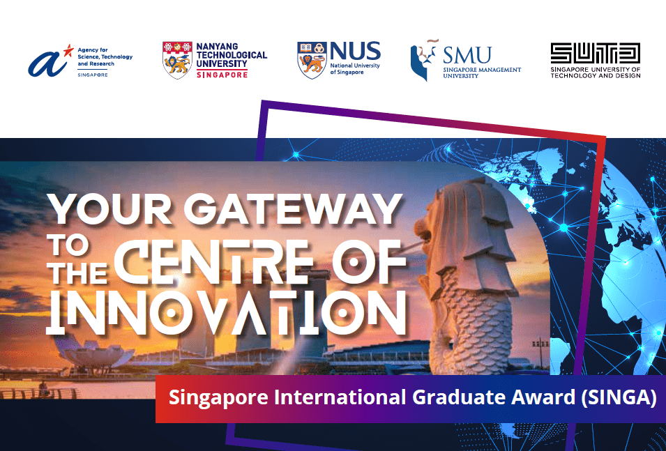 Agency for Science, Technology and Research (A*STAR) in Singapore offers the Singapore International Graduate Award (SINGA) to attract top international students from around the world to pursue their postgraduate studies in Singapore’s world-class universities. SINGA is a collaboration between A*STAR and 5 top-ranking universities in Singapore: Nanyang Technological University (NTU), National University of Singapore (NUS), Singapore University of Technology and Design (SUTD) and Singapore Management University (SMU).