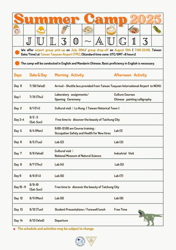 The College of Engineering at National Chung Hsing University (NCHU), Taiwan, is pleased to invite one (1) ITS student to participate in the Summer Camp 2025, which will take place in Taichung, Taiwan, from July 30th to August 13th, 2025.