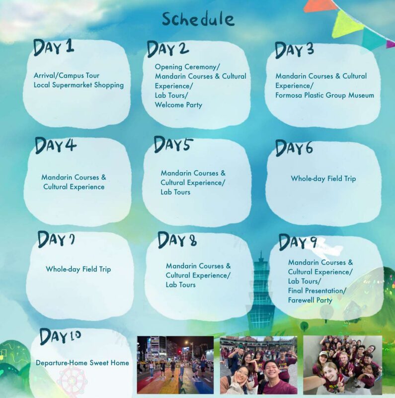 Note: Selected students are responsible for their flight tickets, unscheduled meals, visa fees, insurance outside Taiwan, and personal expenses.