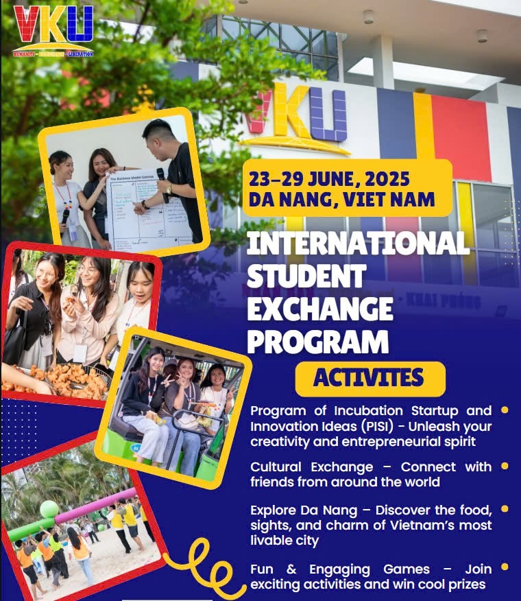 The International Student Exchange Program (VKU-ISEP) is designed to connect students and lecturers from universities worldwide through academic collaboration and cultural exchange. VKU-ISEP fosters an open mindset and essential soft skills to help students adapt to an international environment and grow into true global citizens.