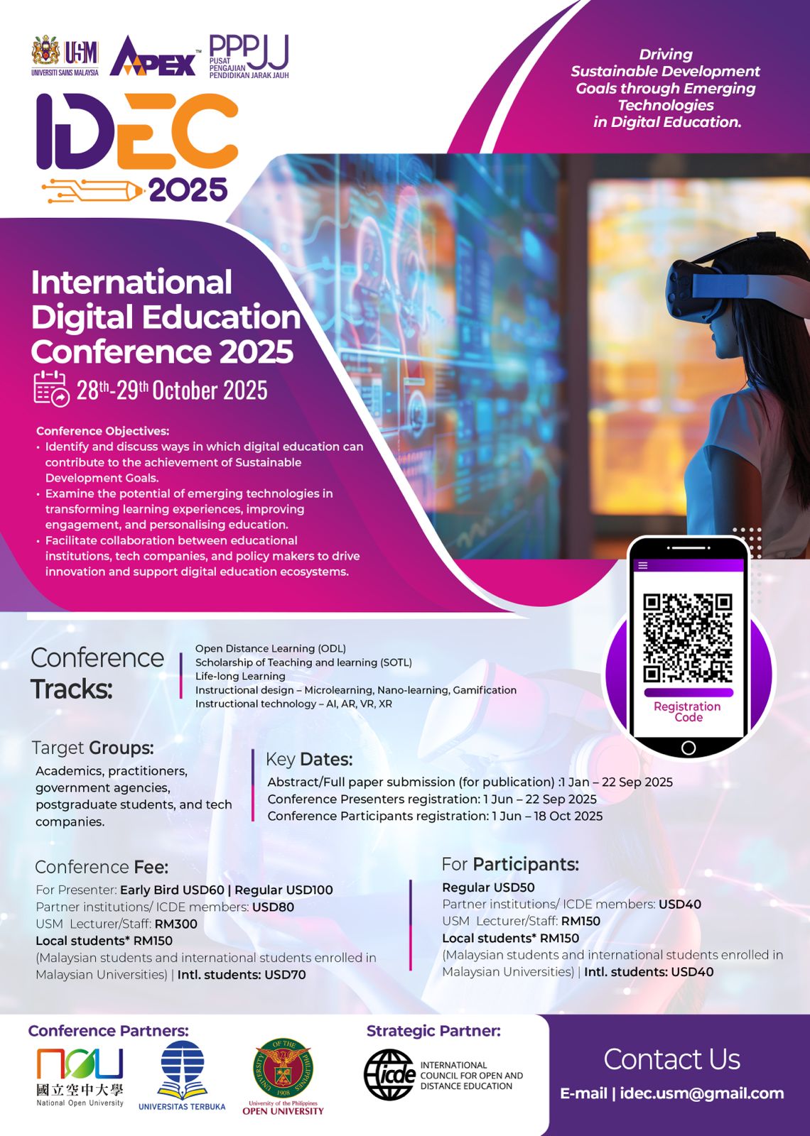 IDEC 2025 aims to identify and discuss ways in which digital education can contribute to the achievement of sustainable development goals. The conference will also examine the potential of emerging technologies in transforming learning experiences, improving engagement, and personalizing education. Furthermore, it seeks to facilitate collaboration among educational institutions, tech companies, and policy makers to drive innovation and support digital education ecosystems.