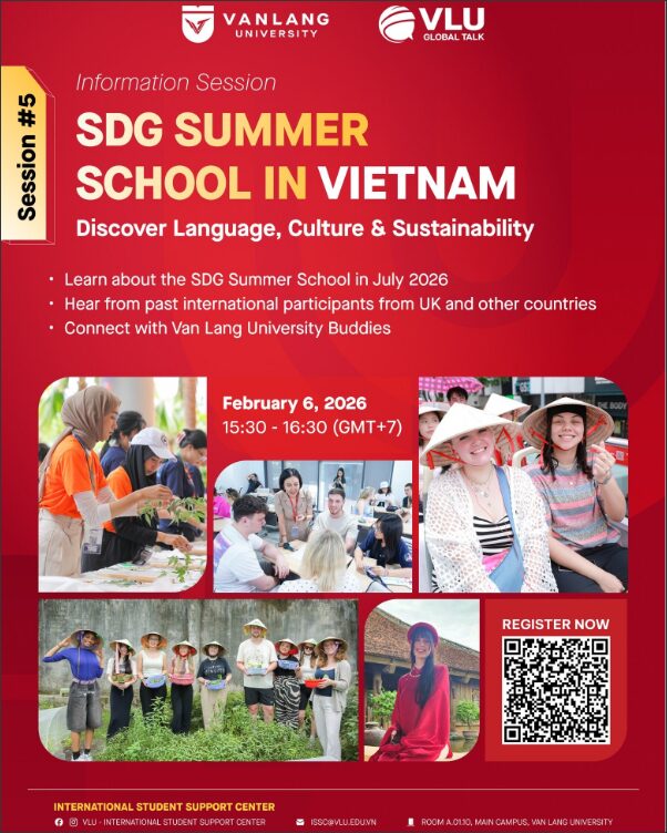 With the SDG Summer School in Vietnam 2026 approaching this July, we are pleased to invite all students to join an online Information Session introducing the flagship one-month Summer School program themed “Discover Vietnam: Language, Culture & Sustainability.”