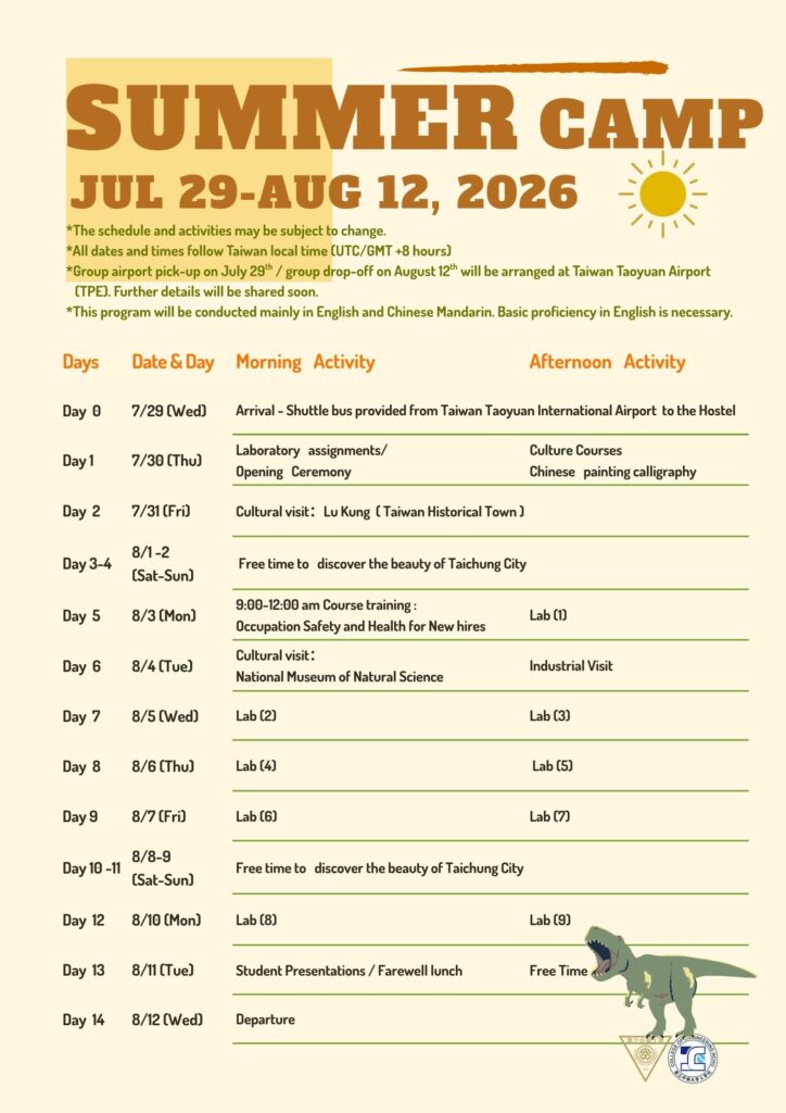 The Summer Camp 2026 at NCHU provides participating students with the opportunity to: