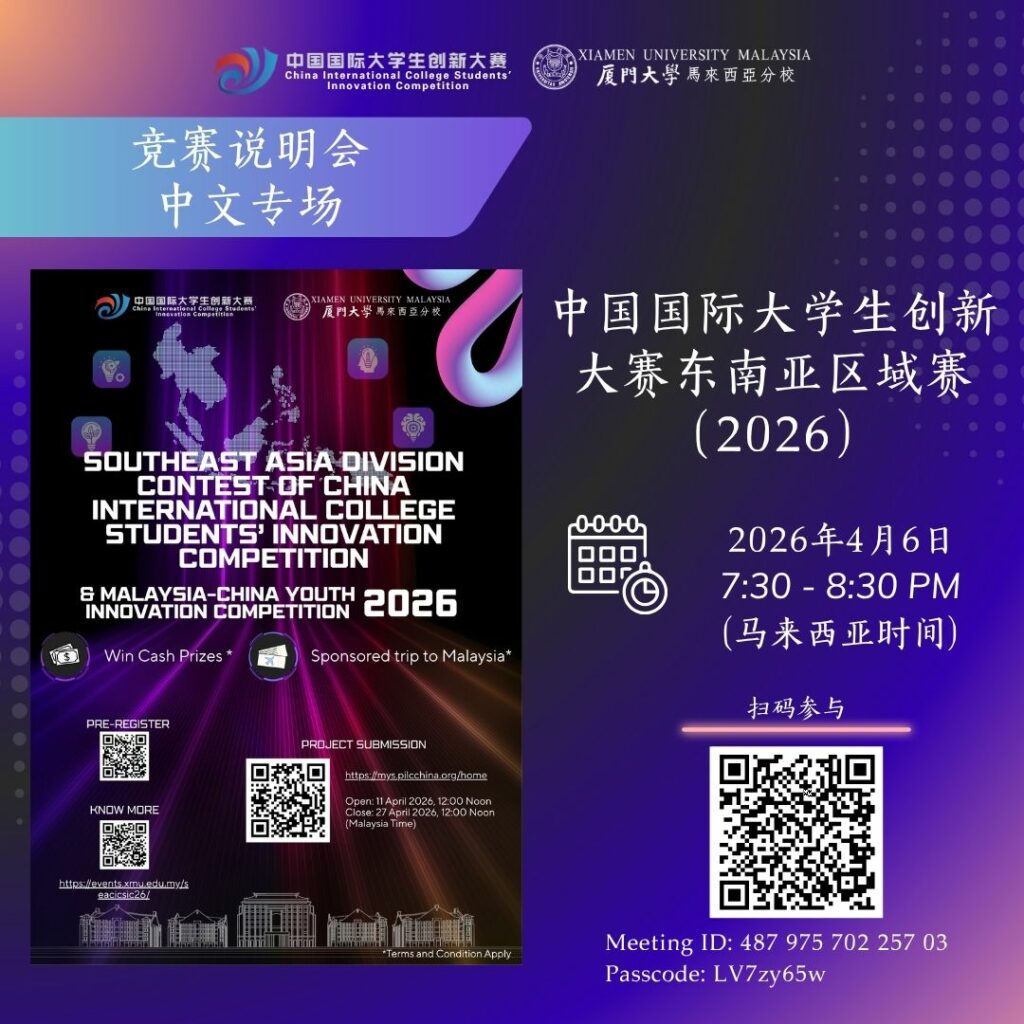 • Southeast Asia Division Contest of the China International College Students’ Innovation Competition 2026 – Registration and Briefing Information