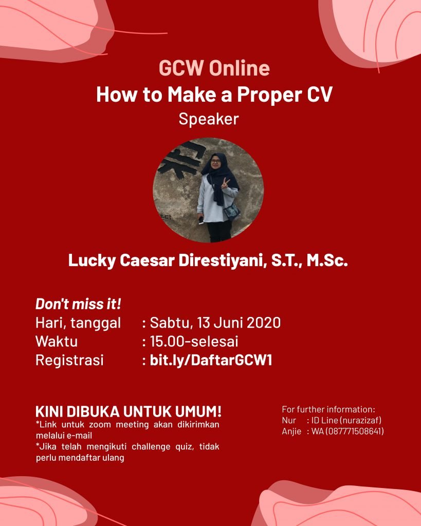 To give a tutorial on how to construct a proper CV based on the applied program, ITS Global Engagement held the first training GCW Online June Series 2020.