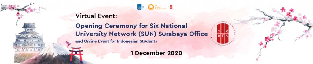 Audiences will be able to participate virtually by getting closer to The Consortium of Six National Universities in Japan and obtain more insights from alumni sharing session including the opening ceremony of National Universities Network (SUN) at ITS Campus, Surabaya Indonesia.