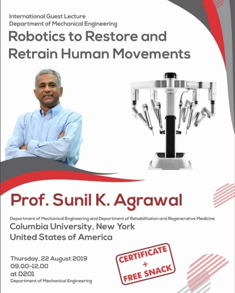 Come to Prof. Sunil K. Agrawal, from Department of Mechanical