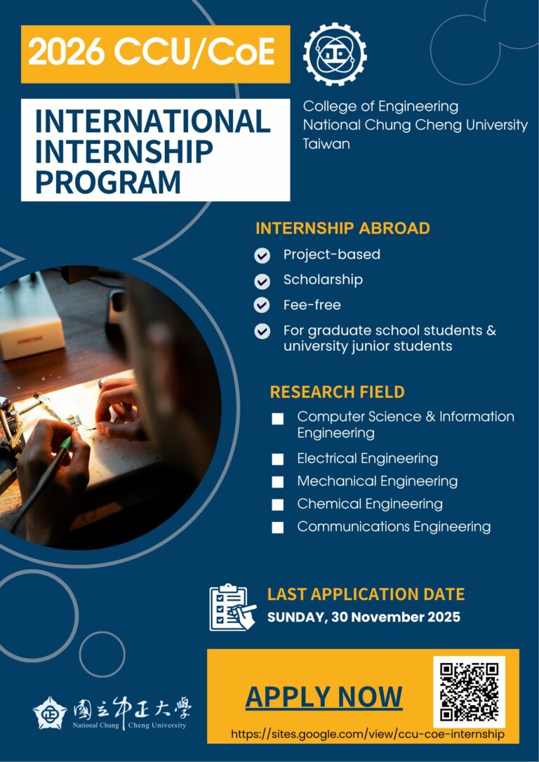 CCU Taiwan is now accepting applications for the College of Engineering International Internship