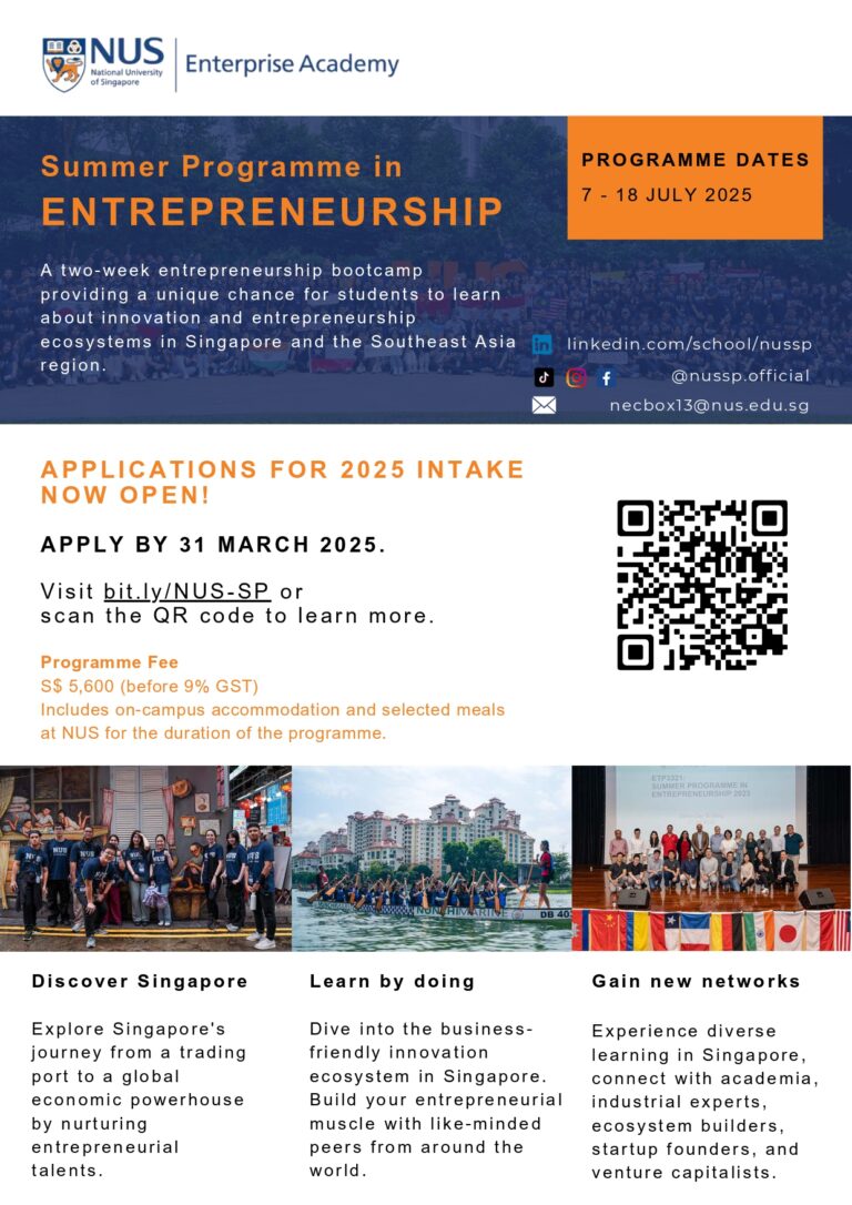 Explore Startups & Innovation at NUS Enterprise Summer Programme Are you an entrepreneurially driven