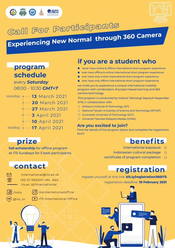 Proudly invite you to join an international short program with the topic of Experiencing New Normal through 360 Camera. The program will offer a combination of project-based learning and 360 camera technology. The program will be started in March 2021!