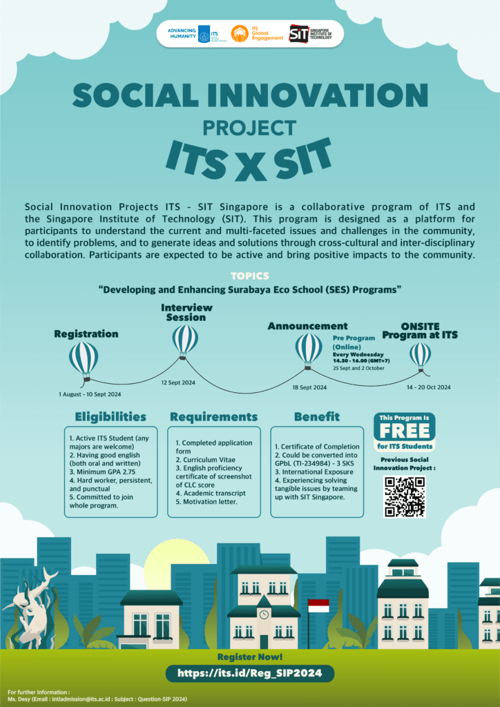 Institut Teknologi Sepuluh Nopember calling all change-makers and innovators! This exceptional collaborative initiative between the Institut Teknologi Sepuluh Nopember (ITS) and the Singapore Institute of Technology (SIT) introduces a unique learning experience.
