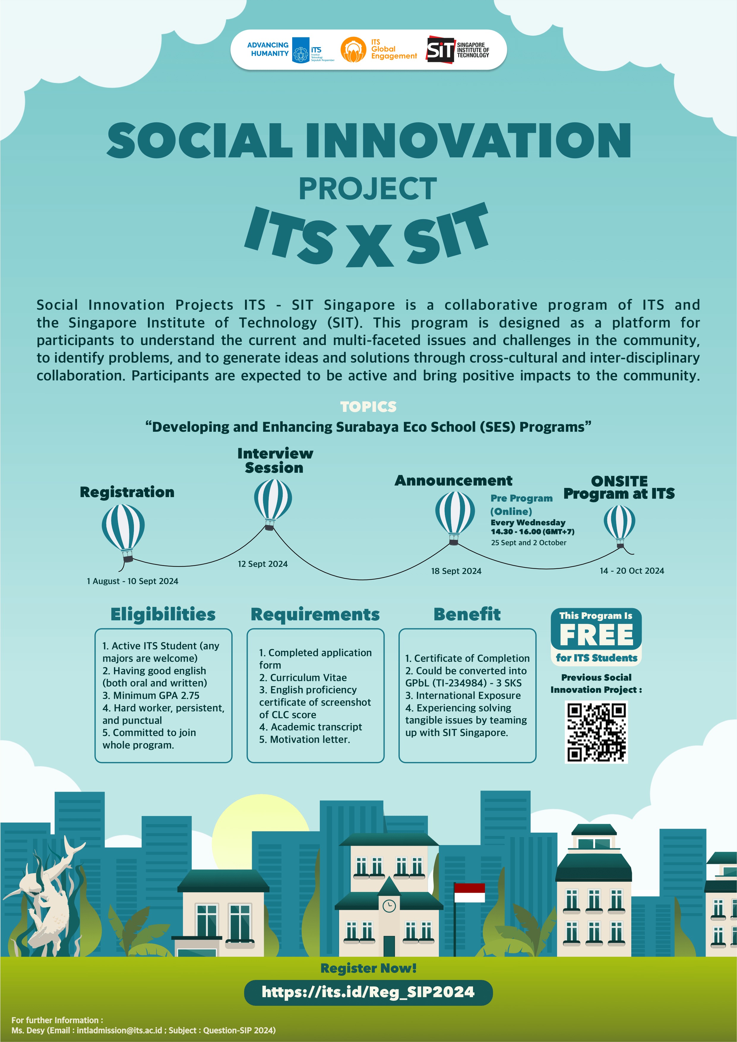 For inquiries, connect with: Ms. Desy at intladmission@its.ac.id