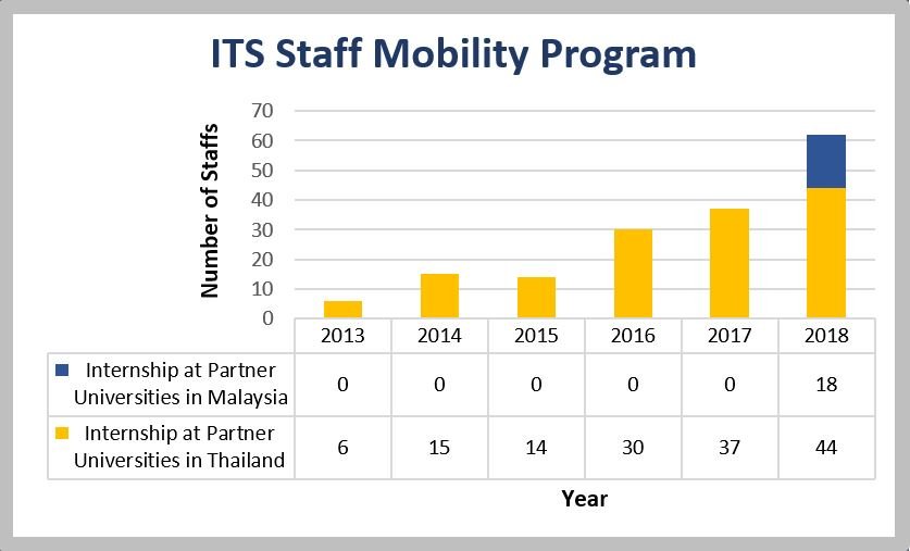 Over the years, the number of non-academic staffs who are interested in joining and doing internship through this program has been increasing (as shown in the graph below). The designated partner universities have also become diverse, not only in Thailand but also in Malaysia.