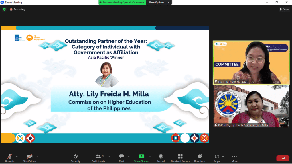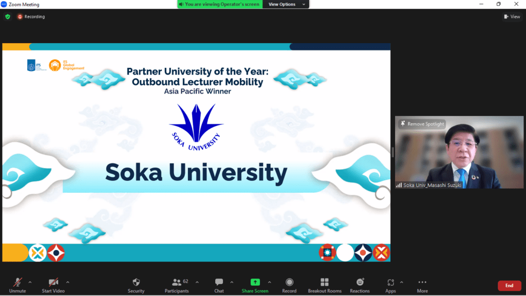 Institut Teknologi Sepuluh Nopember (ITS) through the Directorate of Global Engagement celebrated partnership by holding International Partnership Day (IPD) for Asia Pacific (APAC) and Europe, Middle East, and Africa (EMEA). Not only providing a platform for international partners to network and catch up with global trends and highlights, ITS gave awards to eighteen (18) excellent partners including institutions and figures.