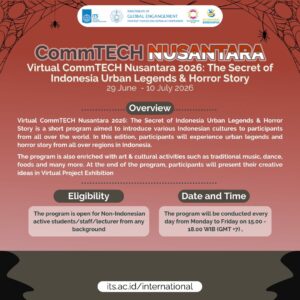 Virtual CommTECH Nusantara 2026: The Secret of Indonesia Urban Legends & Horror Story is a short program aimed to introduce various Indonesian culture to participants from all over the world through amazing exploration of Indonesia. We give understanding the culture of Indonesia through urban legends & horror story of Indonesia.